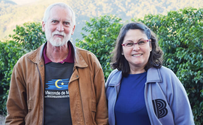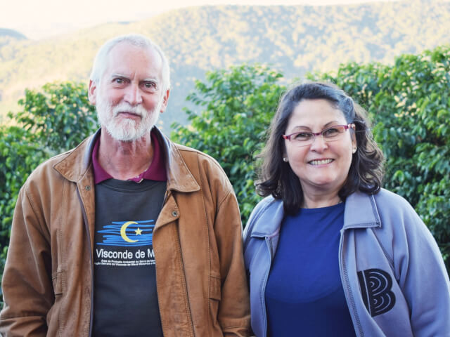 ファゼンダ・トラピアを営む夫婦(レナートさんとアンドレアさん)は、元々はITと保険会社というコーヒーとは異なる仕事に従事していました。2人は2005年、引退を機に、夢であったコーヒー生産者として第2の人生を選択しました。彼らが農場を購入したとき、彼らはアンドレアさんの母親が生まれ育ったブラジル北東部の農場に敬意を表して、同じトラピアという名前に変更しました。農園は元々バエペンジ市の市長が所有していた土地で、購入した当初は20000本のコーヒーが植えられる程度の土地(200袋にも満たない規模)で、ブラジルの一般的なコーヒー農園としてのインフラは全く整っていませんでした。時間を掛けて農地を開墾し、現在は19万本のコーヒーノキが育てられています。農地も70Haまでコーヒー生産を広げ、コーヒー農園として成り立つ十分な規模に育ててきました。また現在は息子のルーカスと共に、スペシャルティコーヒーの生産に注力し、生産処理を行うための様々な設備も整え、品質の高いコーヒーが生産できる素地を整えています。