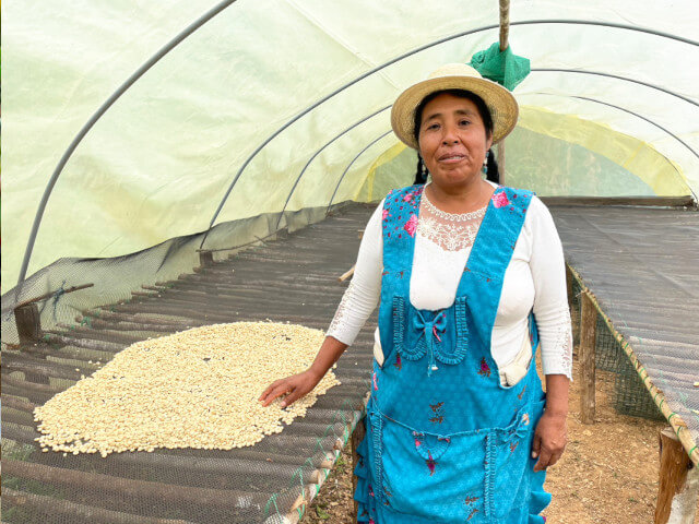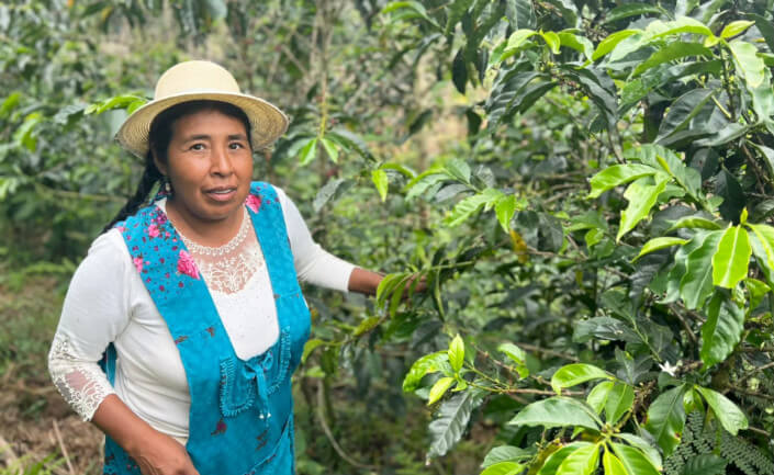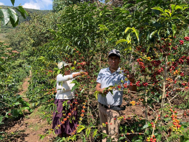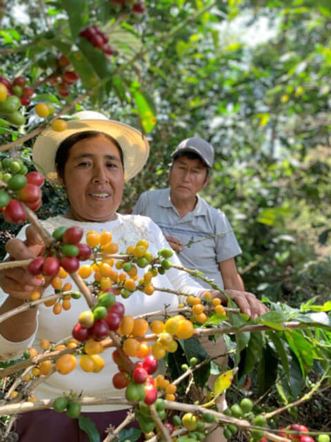 マルセリナさんのお爺さんも元々高地のアルティプラーノ、コニマに暮らしており、サンディア、イナンバリに移り住んだアイマラ語族の3代目の家系です。2015年ごろ家族と共に自身のヌエヴォ・オリゾンテ農園をスタートさせ、豊かな自然環境の中でコーヒーやロコト(アンデス地方特産の唐辛子の1種)、バナナなどを生産し生計を立てています。現在は4Haの農地の半分をコーヒー生産のエリアとして年間30袋ほどのコーヒーを家族で生産しています。 初めは農園の開墾と並行してイナンバリ農協のコーヒー生産プロジェクトに参加し、研修を重ねたそうです。そこで在来系で土壌への適合性や風味の良いレッドブルボンの生産を推奨され、農園のメインバラエティとして採用。栽培のトレーニングを受けながら品質に根差したコーヒー生産を実践するに至りました。ブルボン種の他にティピカやカトゥーラなどを生産しており、現在はゲイシャ種の栽培にも挑戦しています。