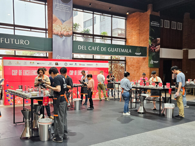2025年のグアテマラCup of Excellence国際審査会は、2025年6月1日から5日にかけて、グアテマラシティのANACAFEを会場に行われました。150ロットがエントリーし、プリセレクションを経て90ロットに絞られ国内審査会に進みました。国内審査会では86点以上の上位40ロットが翌週6月1日からの国際審査会にコマを進めました。ファーストラウンド、セカンドラウンド、ファイナルと3回のカッピングセッションを経て、30ロットが見事にCup of Excellenceに輝きました。
